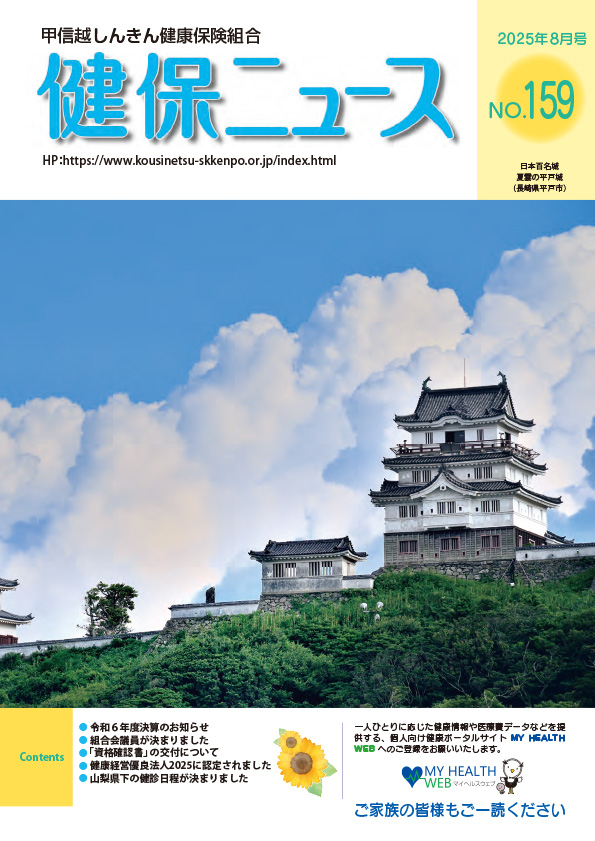 「すこやか健保」は、医療や健康、介護など暮らしに役立つ話題が満載のため、組合員の皆様に役立つ情報等が掲載されていますので、健康保険組合連合会了解のもと掲載しております。